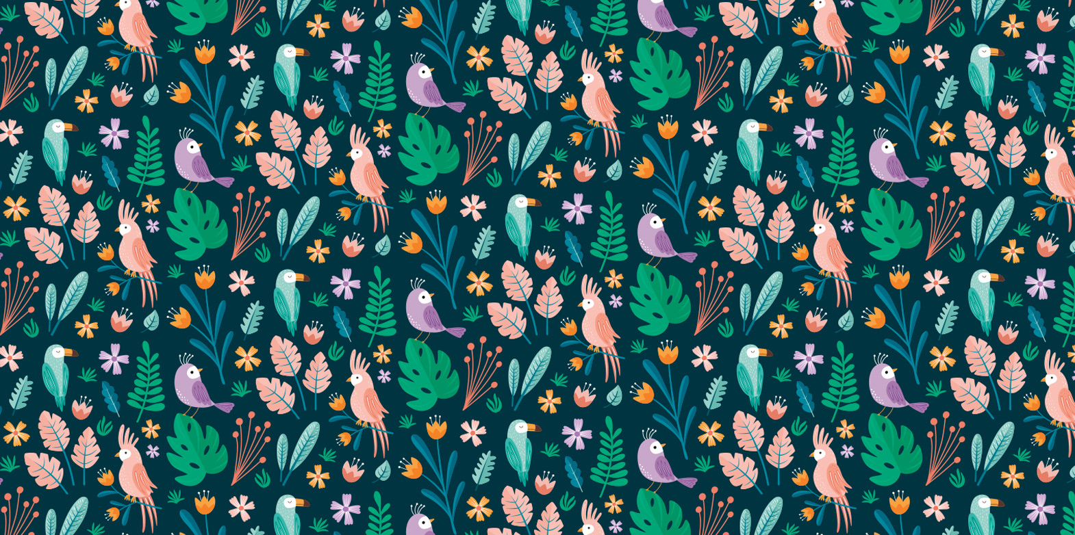 A bold and tropical inspired surface pattern design for the 'Jungle Fever' collection for stationery and giftware brand,